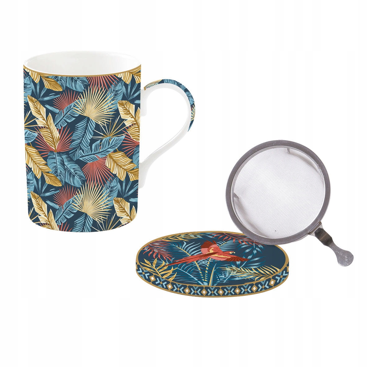 Набір (кухоль із кришкою та металевою заваркою) для заварювання трав/чаю Атмосфера - Екваторіальна з гарним рослинним (екзотичне листя) мотивом.