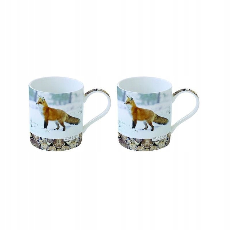 Дві однакові зручні кухлі Wild Life Winter Coll. (у зимовому варіанті) з білої щільнішої порцеляни, традиційної форми з гарним та оригінальним мотивом - фотографією зимового пейзажу (мотив ідентичний з обох сторін, дно кухля: навколо стовбури беріз).