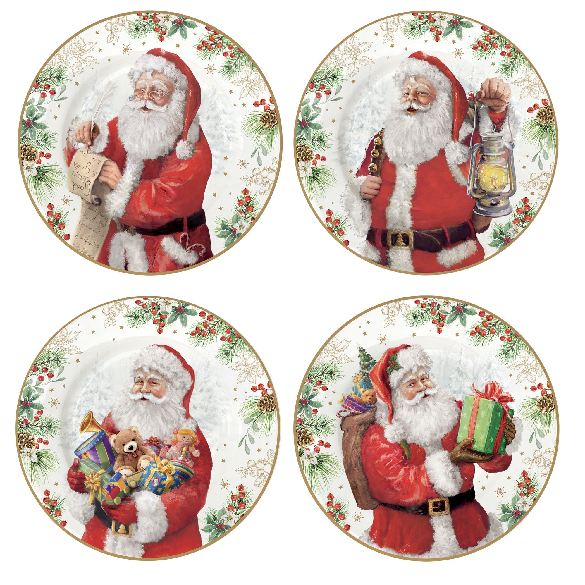 Набір із чотирьох десертних тарілок із різдвяним мотивом Santa is Coming — це продукт, який є частиною великої/широкої колекції Christmas in Easy Life (під брендом Італійський бренд "Easy Life/Nuova R2S) виготовлений із високоякісної блискучої порцеляни "Fine China" (без кістки, товщі за стандартний кістяний фарфор).