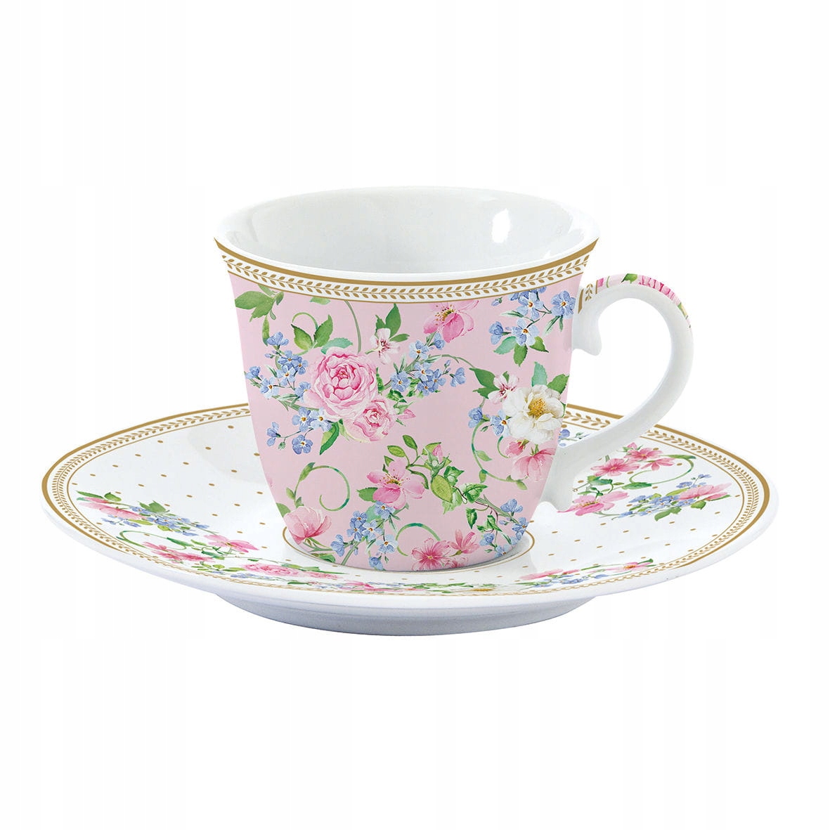 Універсальна чашка (прибл. 190 мл) із блюдцем із міні-колекції Easy Design/Nuova R2S - Golden Joy із гарним квітковим мотивом.