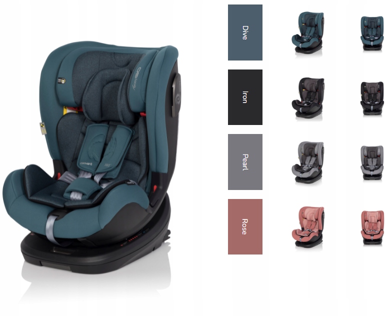 ✔️ 360° обертання – Convert — це поворотне сидіння, що означає, що його корпус можна встановити в чотирьох положеннях: спереду, ззаду та збоку в обох напрямках. Корпус обертається на вбудованій основі ISOFIX без необхідності його знімати. Просто натисніть одну кнопку і без зусиль поверніть корпус сидіння в потрібне положення. Встановлення сидіння набік під час паркування є додатковим значенням, оскільки це значно полегшує розміщення дитини в сидінні та корисно, наприклад, під час годування.