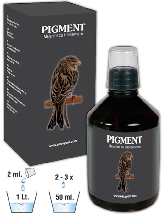 в пір'ях і елементах дзьоба, що спричиняє інтенсифікацію меланіну в меланінових канарах, Гілі, препарат покращує метаболізм та травлення в системах травлення птахів.