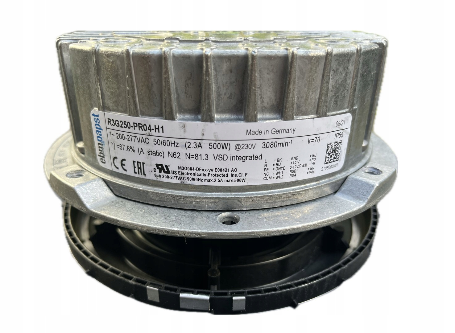 - EBM R3G250-PR04-H1 R3G250 PR04-H1 - PAPST R3G250PR04H1 R3G250 PR04 H1 R3G250-PR04 - EC-двигуни тепер є стандартними для вентиляторів нових установок обробки повітря, що мають відповідати вимогам директиви ErP - EC вентилятор – сучасність, економія та повний контроль - - EC відцентровий вентилятор - RadiCal відцентровий радіальний вентилятор діаметр турбіни: 270x116,8 мм 230 В 50 Гц - працює в діапазоні 200 - 277 В змінного струму 500 Вт двигунM3G084-DF 3080 об/хв 1800 м3/год температура експлуатації -25 +45 - ЗРОБЛЕНО В НІМЕЧЧИНІ б/в, працездатний ціна Брутто ми виставляємо рахунки 23% ! !! !!! відвідайте безпосередньо наш веб-сайт www_DeltaPunkt_pl там ви знайдете більше інформації про продукт і технічні дані у вкладеному файлі PDF !!! !! ! www_DeltaPunkt_pl/wentylatory/995-wentylator-odsrodkowy-ebm-r3g250-pr04-h1-1800m3h-500w-230v-r3g250-ec-centrifugal-fan.html