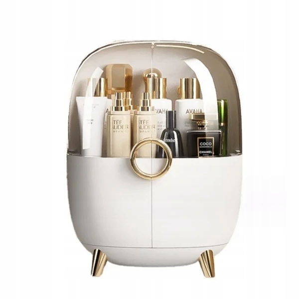 Практичний органайзер для косметики, прикрас або інших аксесуарів для кожної жінки.Красивий, елегантний і дуже місткий. Крім того, він надзвичайно красивий і стане прикрасою кімнати. Характеризується місткими ящиками та великою вітриною для парфумів, бальзамів чи кремів. Він збереже ваші дрібні предмети акуратними та охайними. Органайзер виготовлений з акрилу модного кольору, а додаткові елементи золотистого кольору надають виробу ексклюзивності. Прозора кришка дозволяє легко знайти необхідну косметику. Характеристики продукту: Матеріал: Акрил Домінуючий колір: Білий Ширина: 27 Висота: 36 Глибина: 18 Матеріал: Акрил Ідеально підходить на подарунок.
