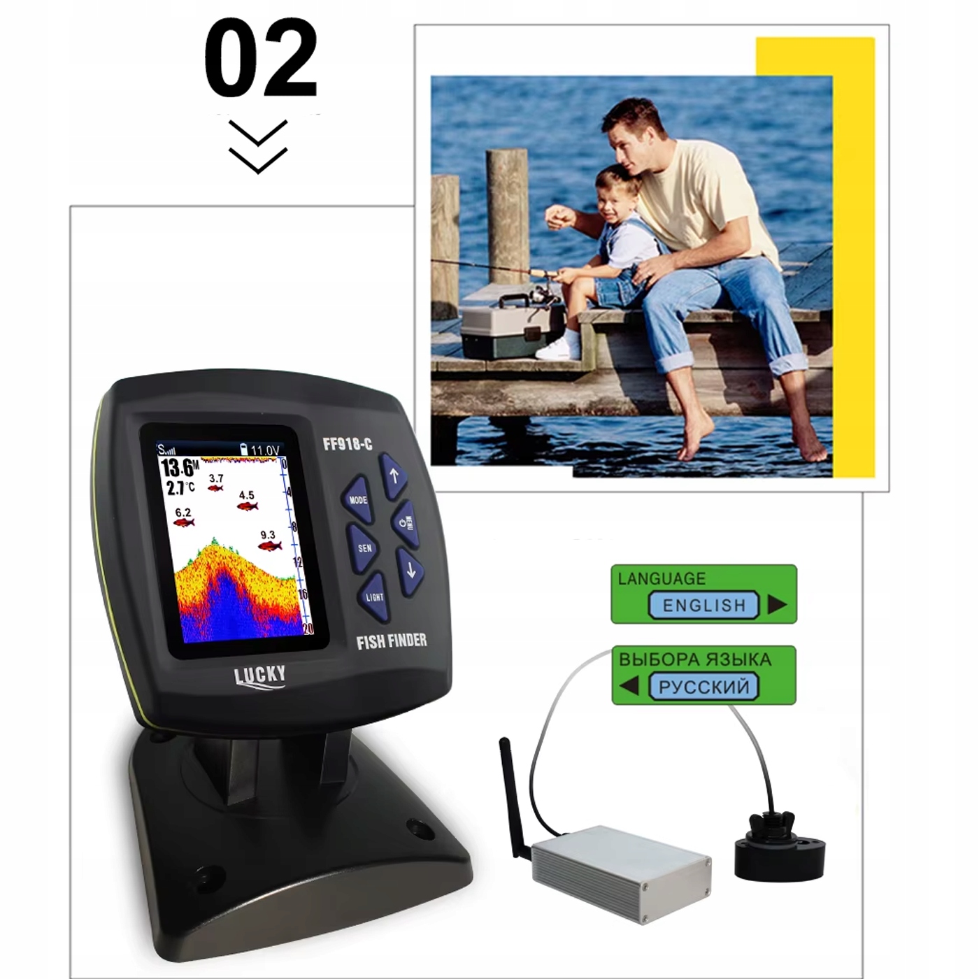 - Налаштування до 100 глибини сканування до 100 метрів - Ідеально підходить для різних вод