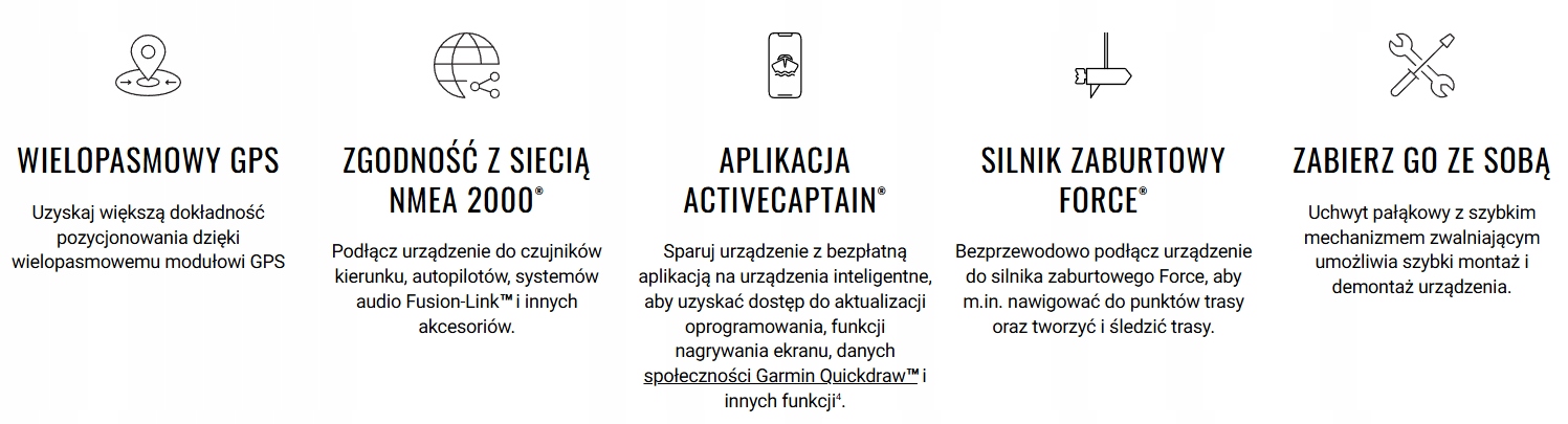 Ці універсальні навігаційні чутки, оснащені великими, чіткими дотиками, читаючими в повному сонці-вони надають нові можливості рибальських риб на вашій пальцям. Ці сюжетки підтримують Garmin Navionics+™ і Garmin Navionics Vision+™ , а набір із перетворювачем додає до сканування конфігурації Echosondy ультра високого дефіциту та традиційного Echosondy Chirp