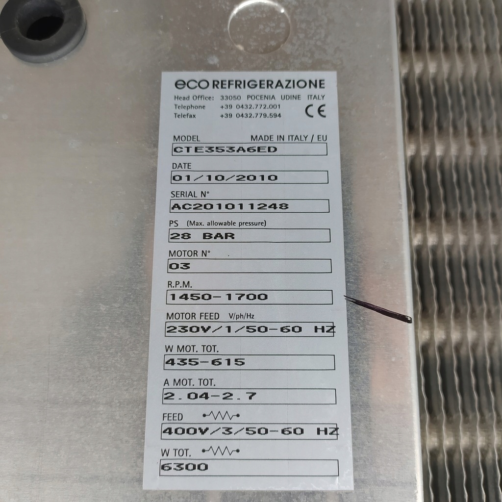 Потужність охолодження: 15,3 кВт при +2*C (температура в камері)