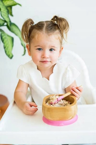 Глибока миска з присоскоюі ложкадо набору, все з бамбука і харчового силікону! Ці матеріали безпечні для дитини. Ця піала ідеально підходить для подачі супу або каші. У ній можна подавати як гарячі, так і холодні страви. Оснащений присоскою, він запобігає викиданню зі столу або стільчика для годування. Його легко підтримувати в чистоті, але його не слід мити в посудомийній машині. У набір входить ложка, яка підходить для немовлят.