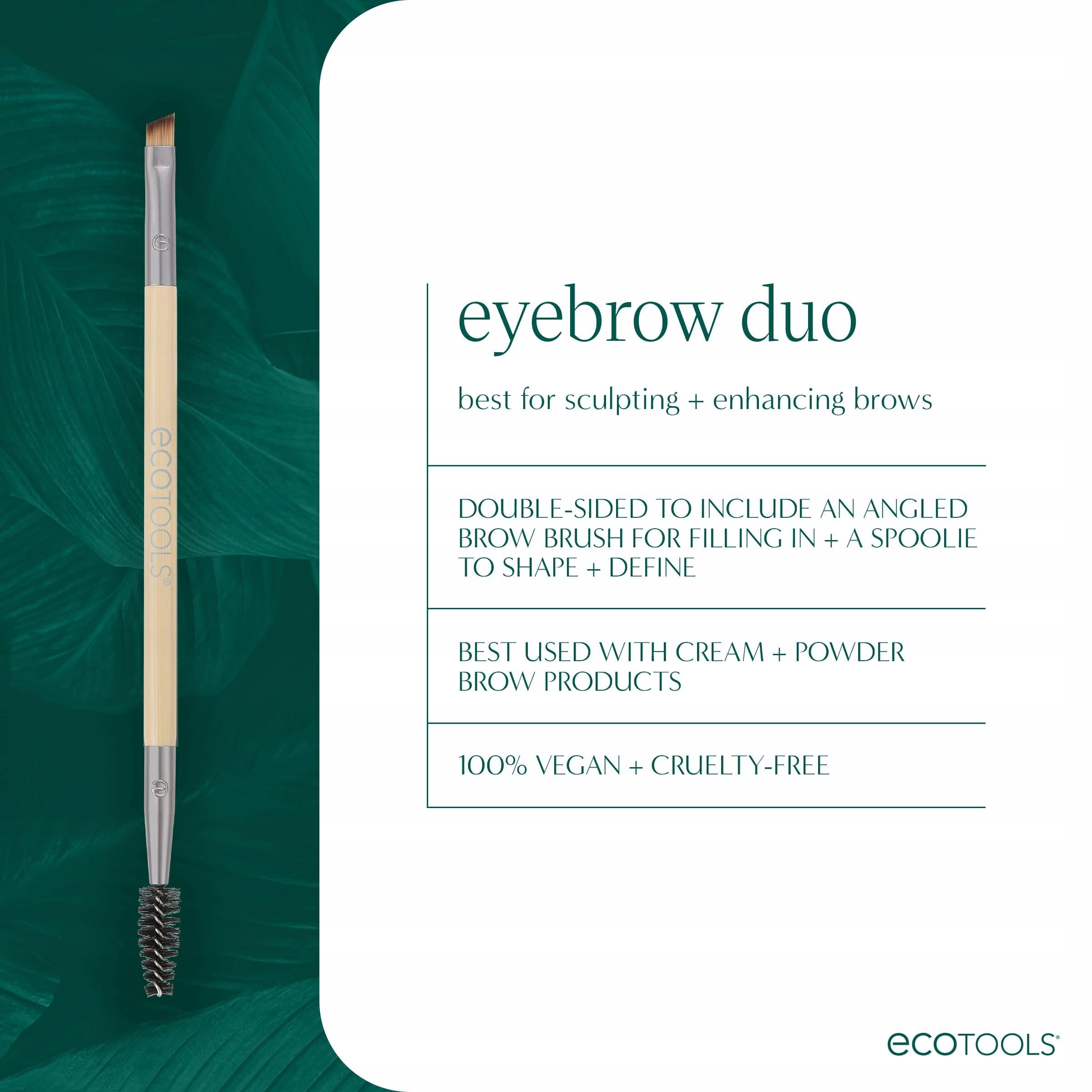 Дует для щітки для брів Ecotools, приручений, скульптур та заповнення брів, багатоцільова для гель для брів, порошку та крему, подвійна щітка та чинна щітка для брови, екологічна, без жорстокості та вегани, 1 граф 2>