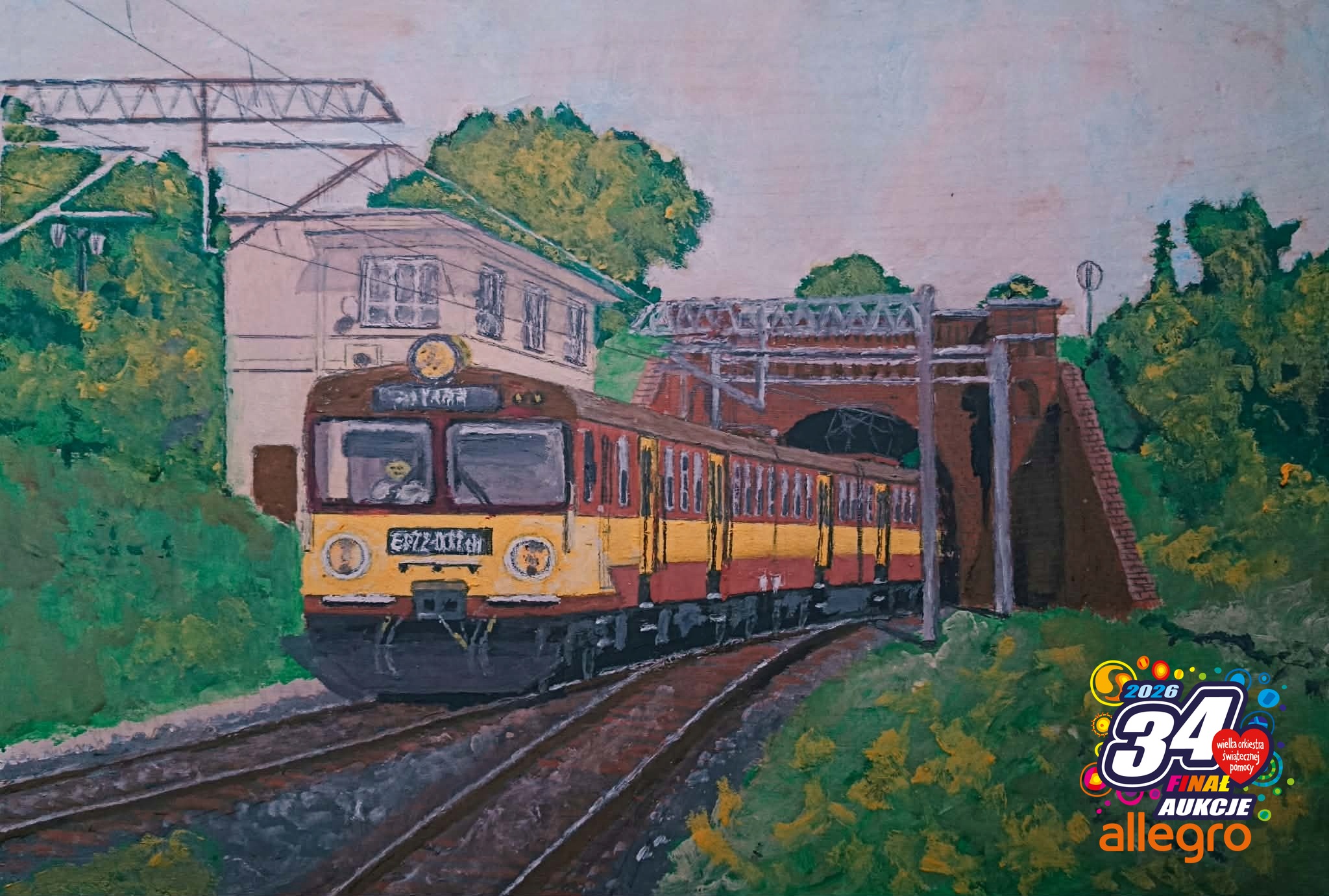 Картина Міхала Вендзіни з EMU ED72, що виїжджає із залізничного тунелю в Торуні.