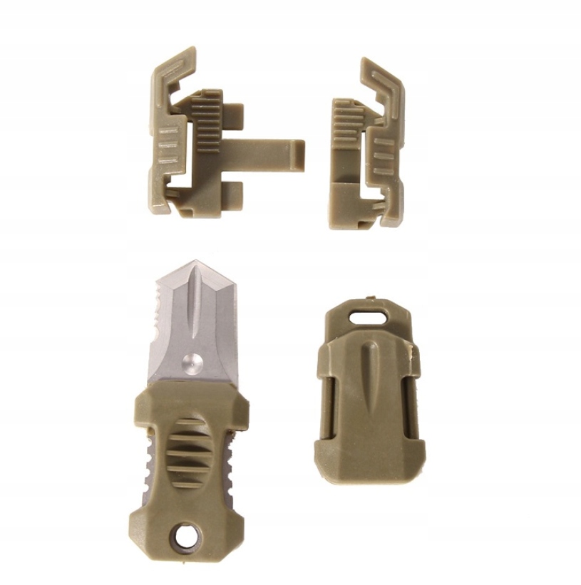 - Ніж у пластиковій ручці дуже добре закріплений - він має замок, щоб він не випав кріпиться до рюкзаків, сумок, обладнання