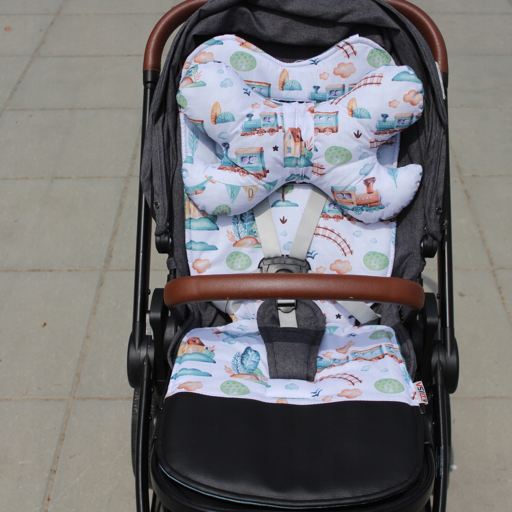 Метелик, прикріплений до спеціального знімного ременя. Він наповнений силіконовим, пружним м'ячем для наповнення. Це як двостороння устілка і забезпечує правильне положення, і захищає делікатну головку дитини під час прогулянок.