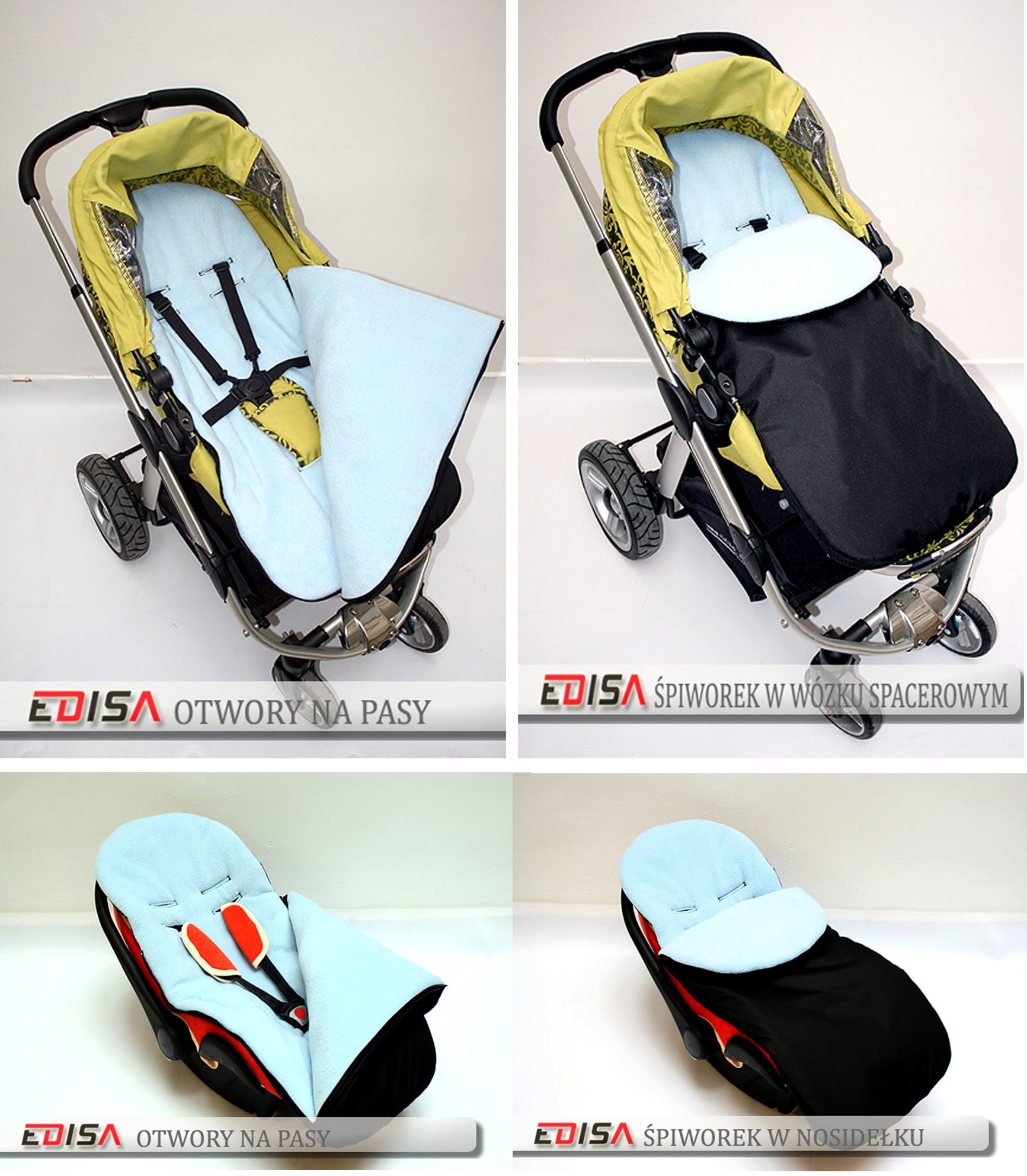 Пропонований спальний мішок являє собою комбінацію високоякісної POLARA з просоченою тканиною, яка використовується для виробництва колясок, додатково утеплена теплою ковдрою. Його можна використовувати в колясках, автокріслах або на санках. Кріпиться з отворами для 5-точкових ременів. Зовнішню частину спальника можна повністю відстібнути, залишивши лише вкладиш для коляски, що полегшить розміщення дитини в колясці. Спальний мішок ефективно захищає дитину від холоду.