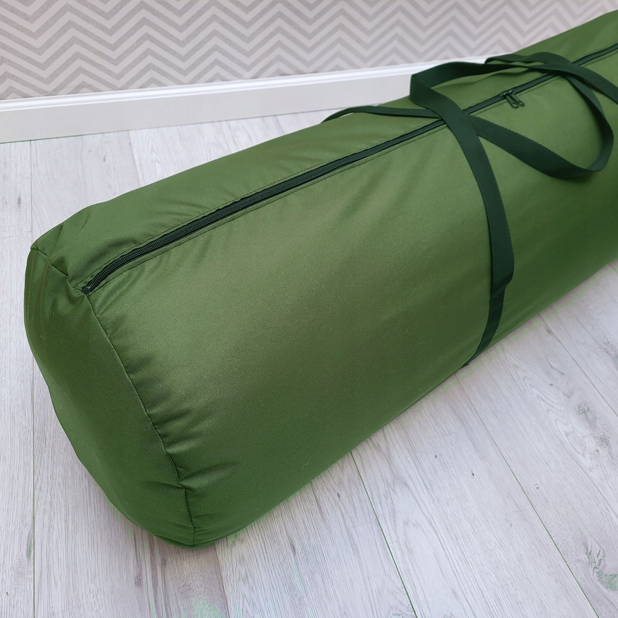 Суцільний чохол для штучної ялинки виготовлений з міцної та стійкої до механічних пошкоджень та погодних умов тканини (водонепроникний). Сумка закривається на подвійну експрес-блискавку. Має міцні ремінці, які полегшують перенесення ялинки.