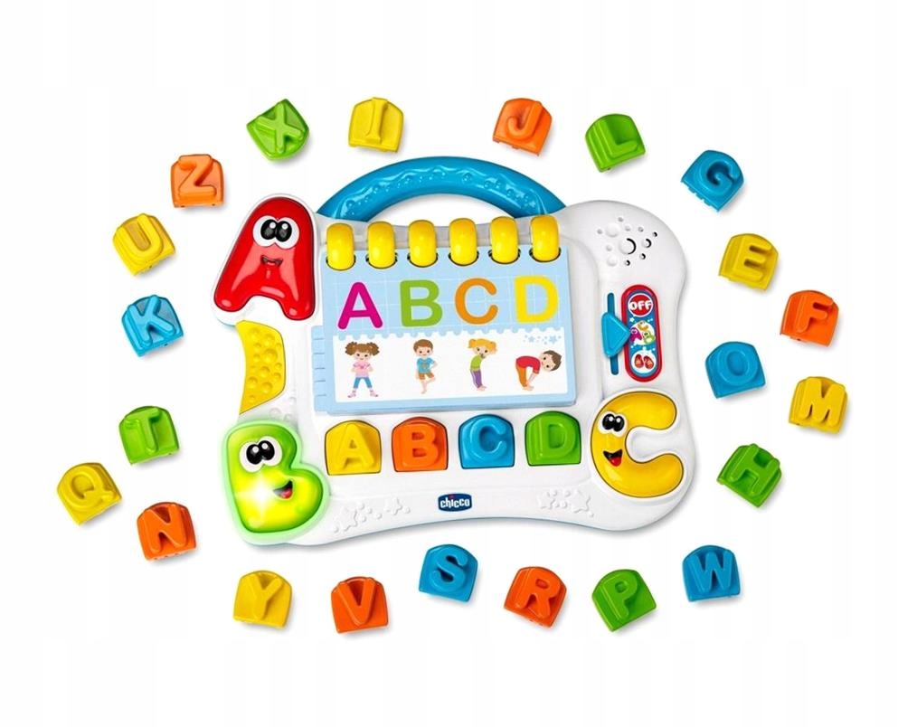 Іграшка має інтегровану 7-сторінкову книгу з наступними літерами алфавіту та графікою, яка ілюструє, як їх показувати з тілом; Книжка впізнає, коли дитина гортає сторінки!