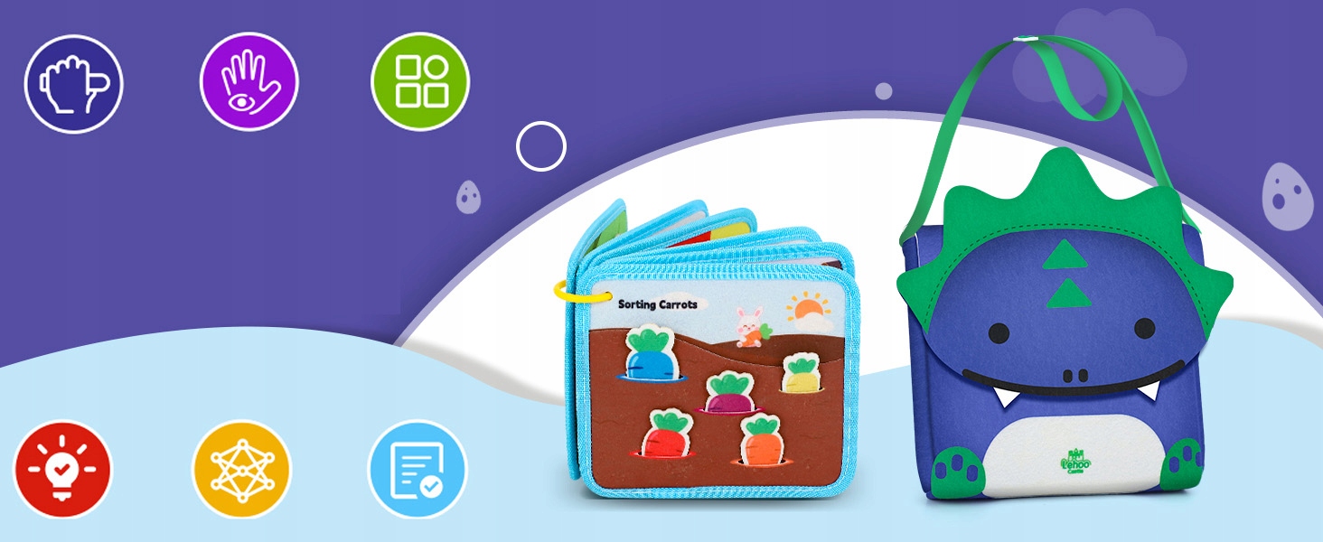 Наша дошка Монтессорі для малюків виготовлена з м’якого фетру без гострих країв, не містить флуоресцентних тканин і всі частини надійно закріплені. Портативну сумку через плече малюки легко зберігати та носити, поки у них є незліченна кількість захоплюючих розваг, а також це обов’язкова річ для маленьких дітей у дорозі, щоб вони були зайняті та тихі в автомобілях та літаках.