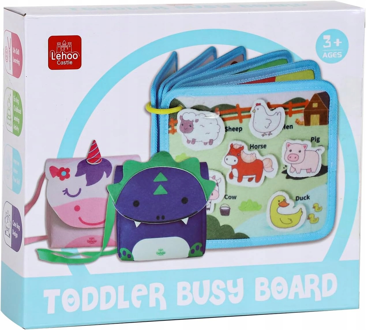 Нещодавно оновлена дошка Montessori Busy Board має більш портативний дизайн і більше вмісту. Красива регульована сумка на плече містить 12 сторінок дошок для занять на 9 тем: життєві навички, числа, кольори, форми, розміри, головоломки, транспортні засоби, лікарні, ресторани та ферми. Унікальний дизайн петлі та пряжки дозволяє легко носити та ділитися. Ваша дитина буде годинами досліджувати та гратися у світі, який викликає цікавість і творчість.