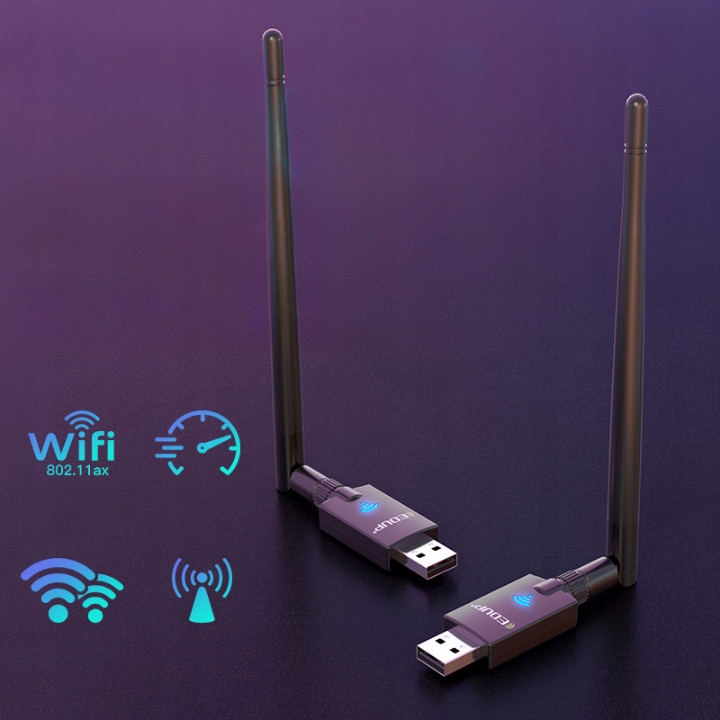 ✅ EDUP EP-AX900 – це бездротовий USB-адаптер 802.11ax, швидкість якого швидкість передачі може бути до 886 Мбіт/с.