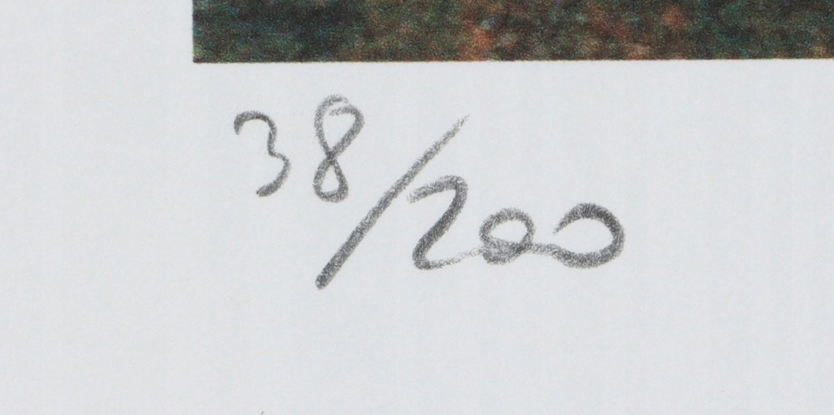 Техніка: літографія / папір. Робота, підписана на тарілці в нижньому правому куті, і вручну пронумеровано олівцем у нижньому лівому куті 38/200. Сертифікат SPA La Trec, доданий до роботи.