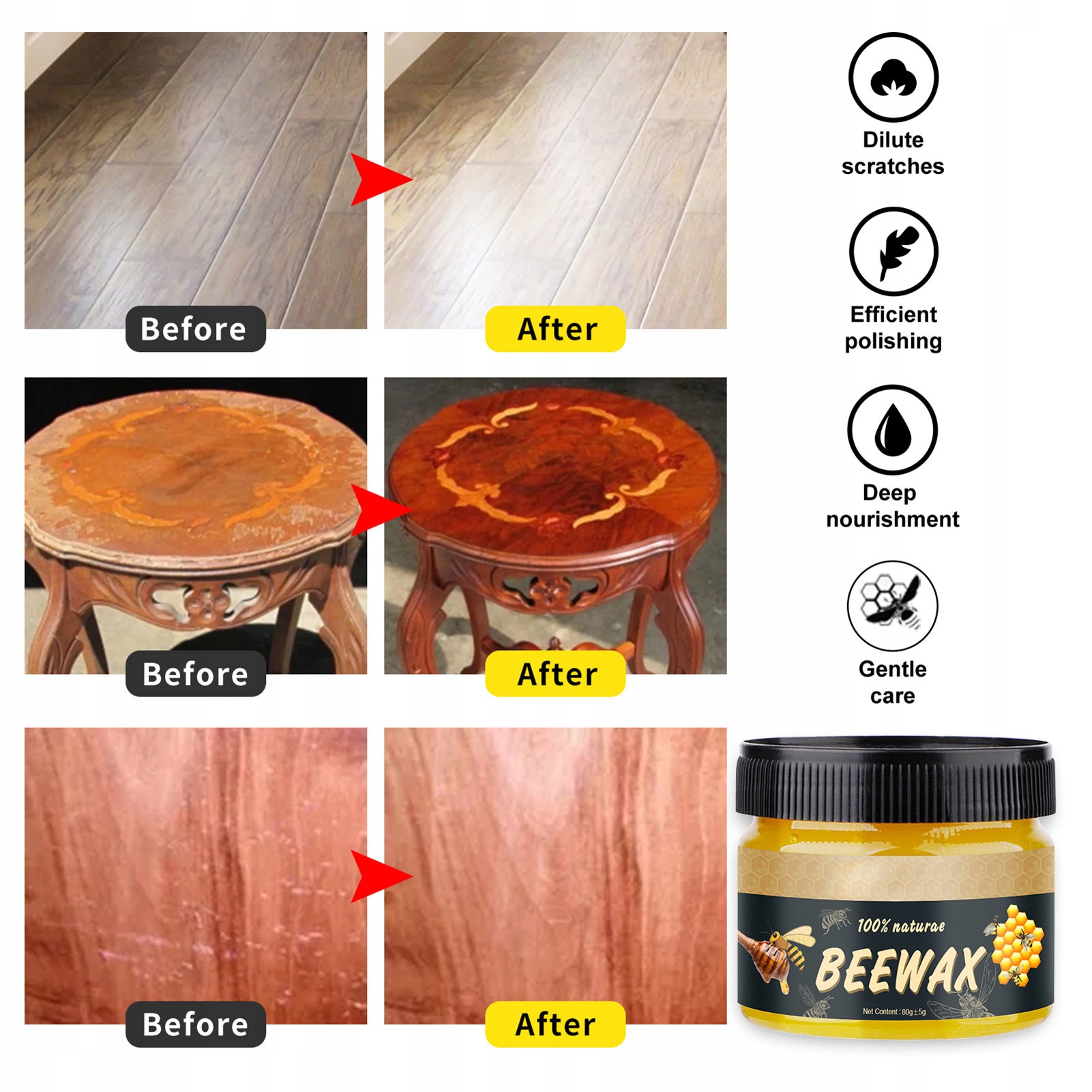 - Багатофункціональний дерев'яний віск для очищення меблів, видаляє роки накопичення воску та бруду, відновлює появу старих меблів та покращує природну узгодженість та рифування текстур у готовій та незавершеній деревині.