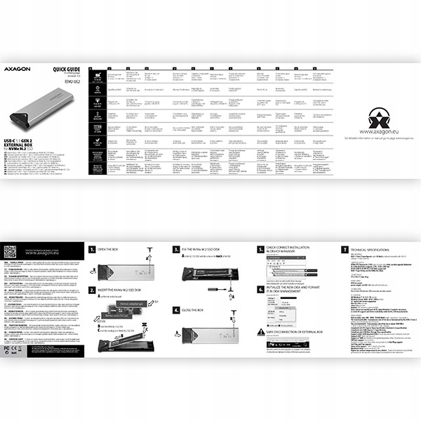 Надшвидкий зовнішній корпус AXAGON EEM2-UG2 із USB 3.2 Gen 2 розроблений для NVMe (PCI-Express) M.2 SSD-накопичувачів.