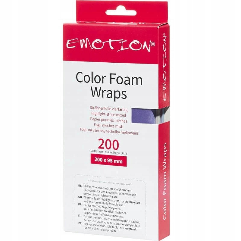 Чотириколірний папір Efalock Color Foam Wraps — це готові до використання смужки. Прозорі, вони дозволяють швидко оцінити ефект фарбування. Вони значно полегшують фарбування волосся. Мають непроникне полімерне покриття. Крім того, вони екологічні, оскільки на 100% піддаються біологічному розкладанню.