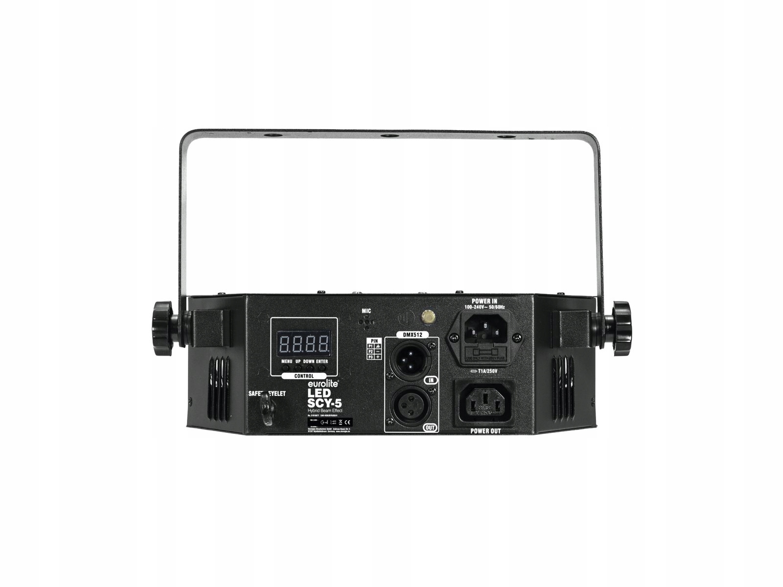 Керування пристрою можна здійснити за допомогою інфрачервоного дистанційного керування Eurolite IR-7 або через панель з дисплеєм, розміщеним на задній панелі пристрою, та за допомогою будь-якого контролера DMX. Він охоплює 1, 4 або 20 каналів DMX.
