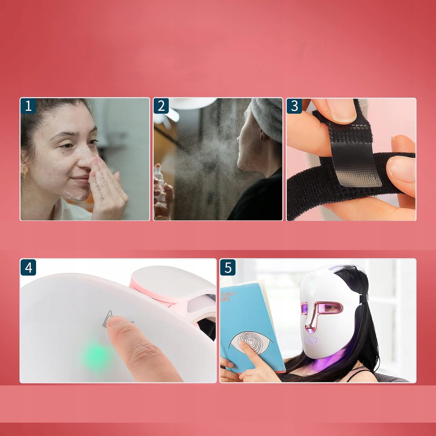 1. Рекомендується використовувати його 2-3 рази на тиждень, 10-15 хвилин щоразу; Найкраще не використовувати його під час зарядки, інакше це може статися до короткого замикання; Якщо у вас є рани для обличчя, дерматит або пошкодження шкіри, не використовуйте його або спочатку проконсультуйтеся з лікарем; Якщо під час використання виникають незвичні симптоми (наприклад, свербіж або почервоніння), негайно припиніть використання та проконсультуватися з лікарем; Не дивляться прямо на світлодіодне світло; Використовуйте його під наглядом людини, яка розуміє загрози та безпечні методи використання, і діти не можуть використовувати його.
