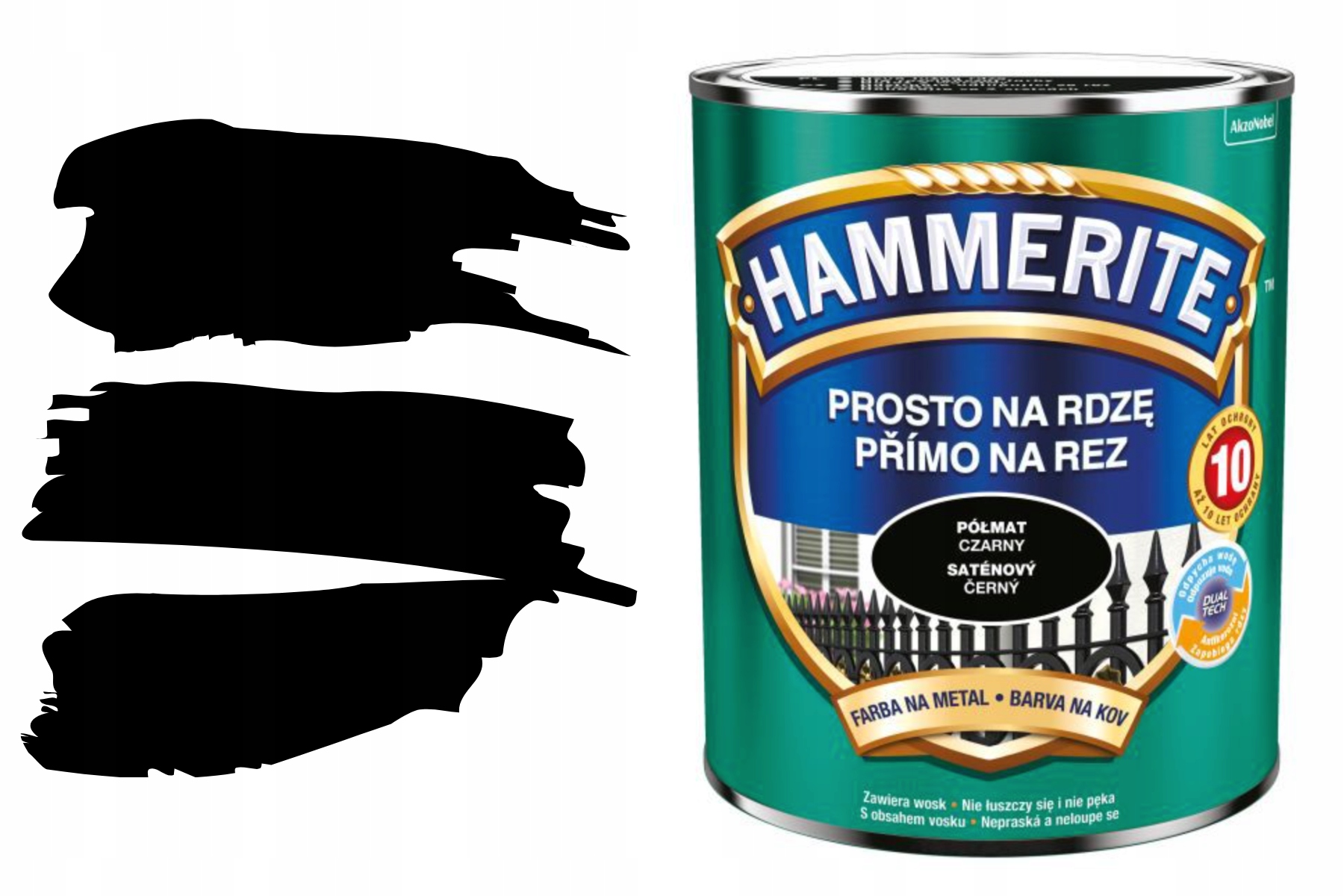 Hammerite straight for rust — однокомпонентна повітряно-висихаюча фарба для антикорозійного та декоративного фарбування литих металів (сталі, чавуну).