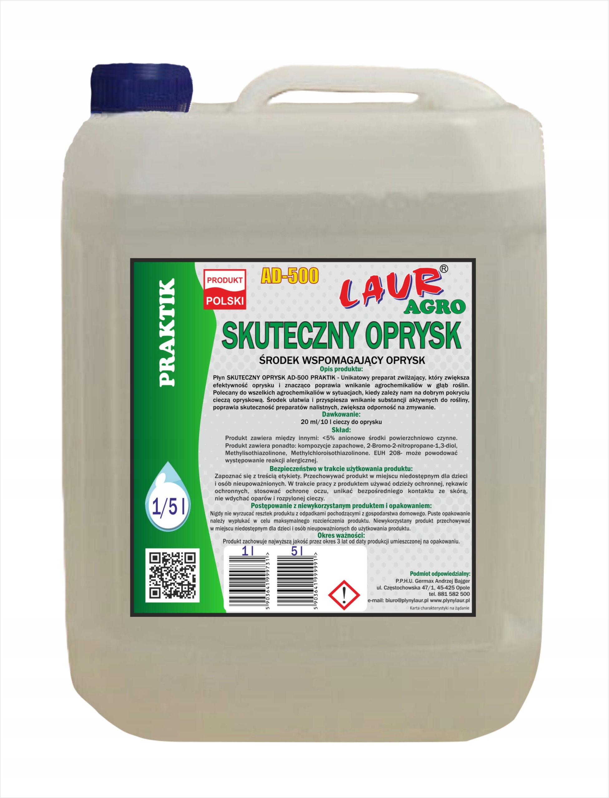 ЕФЕКТИВНЕ ОБРИСКУВАННЯ LAUR AD-500 (УПАК. 5Л) ЗМОЧУВАННЯ АГРОАДГЕЗІЇ