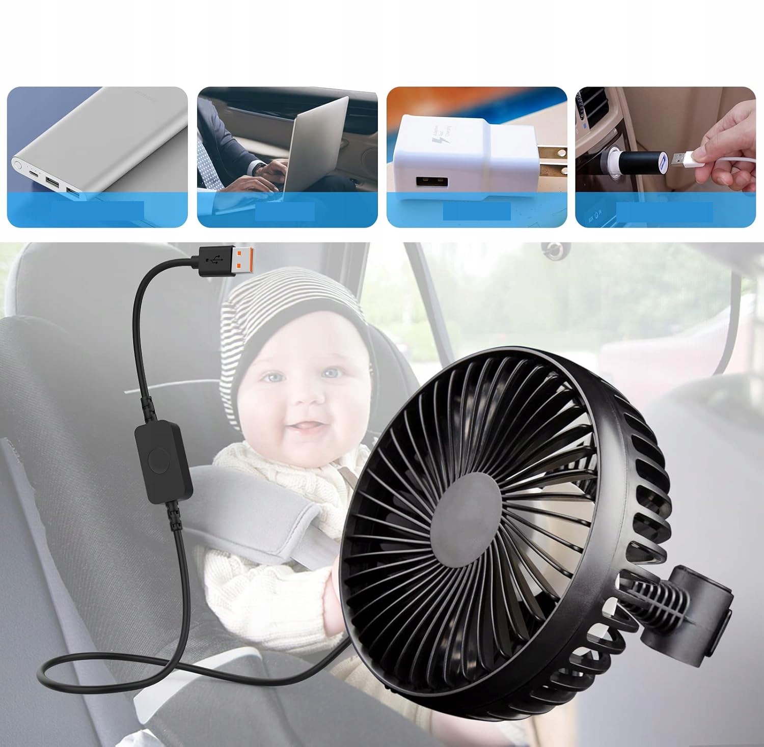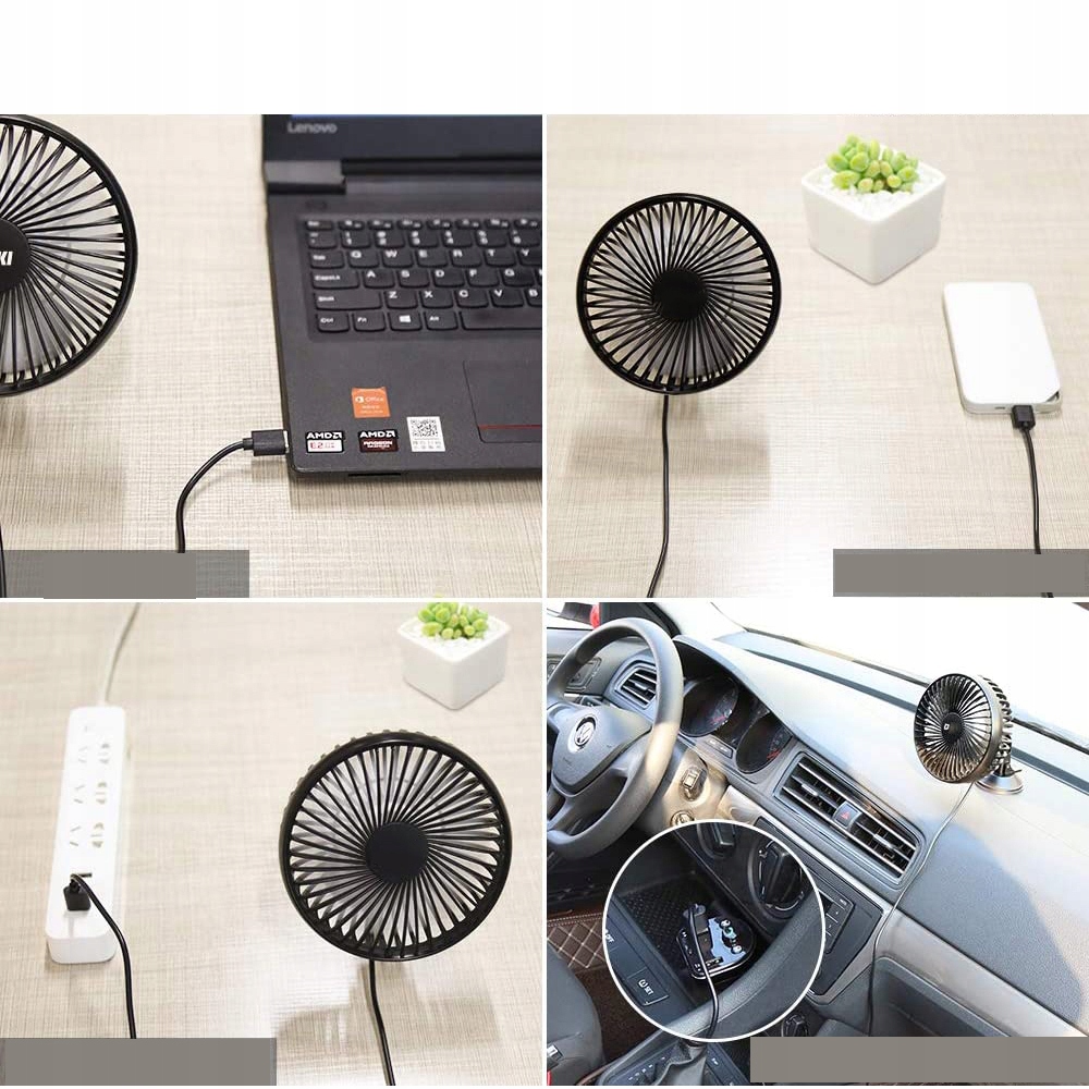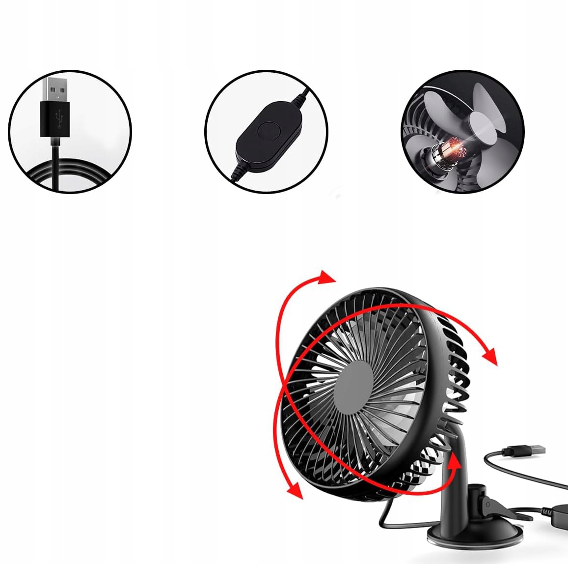 - USB-вентилятор з присосною чашкою та регульованою ручкою на спинці, можна розмістити на лобовому склі, середню консоль автомобіля, ручку на задньому сидінні автомобіля тощо