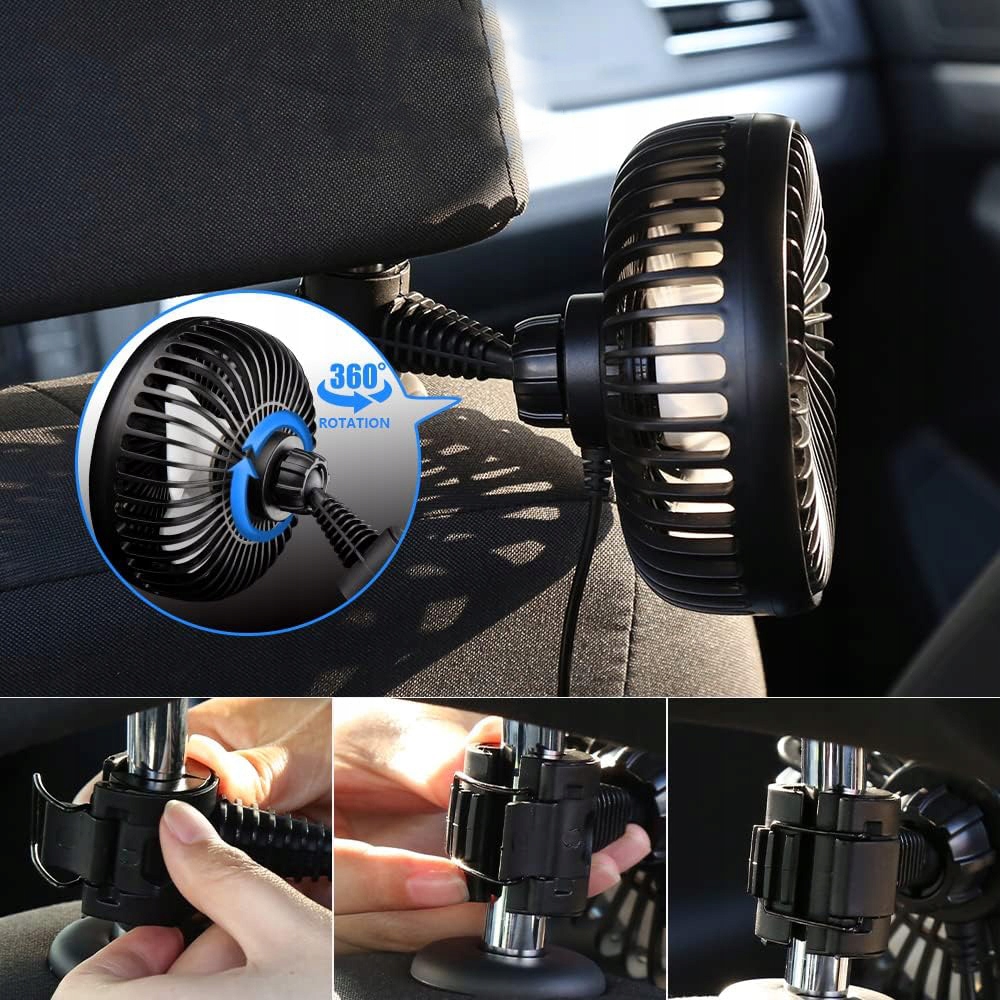 🧊🧊 🧊【 Комплексне охолодження】 Вентилятор автомобіля забезпечує комплексне охолодження, не обмежуючи видимість під час руху. Вентилятор автомобіля може обертати 360 градусів, тому вам нічого не потрібно турбуватися. Ви можете відрегулювати напрямок потоку вентилятора до свого місцезнаходження. Цей проект може задовольнити різні потреби.