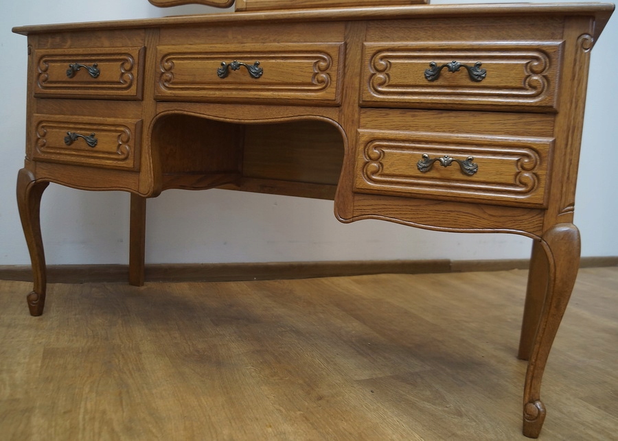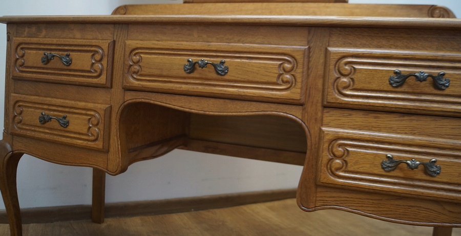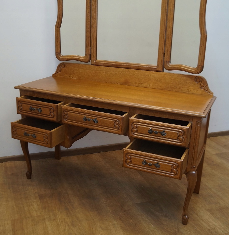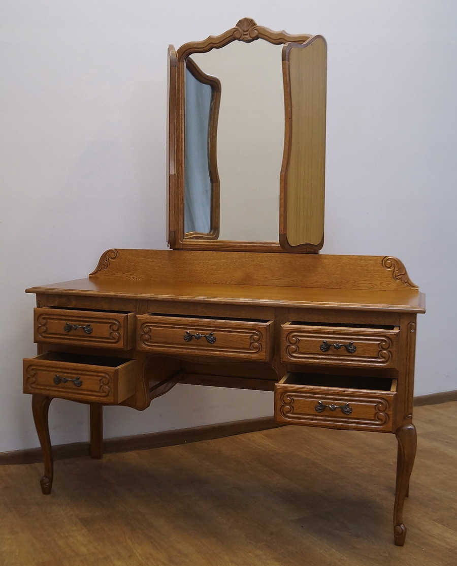 Я запрошую вас придбати прекрасний туалетний столик Людвіковський. У ньому є дзеркало суспензії та п’ять ящиків.