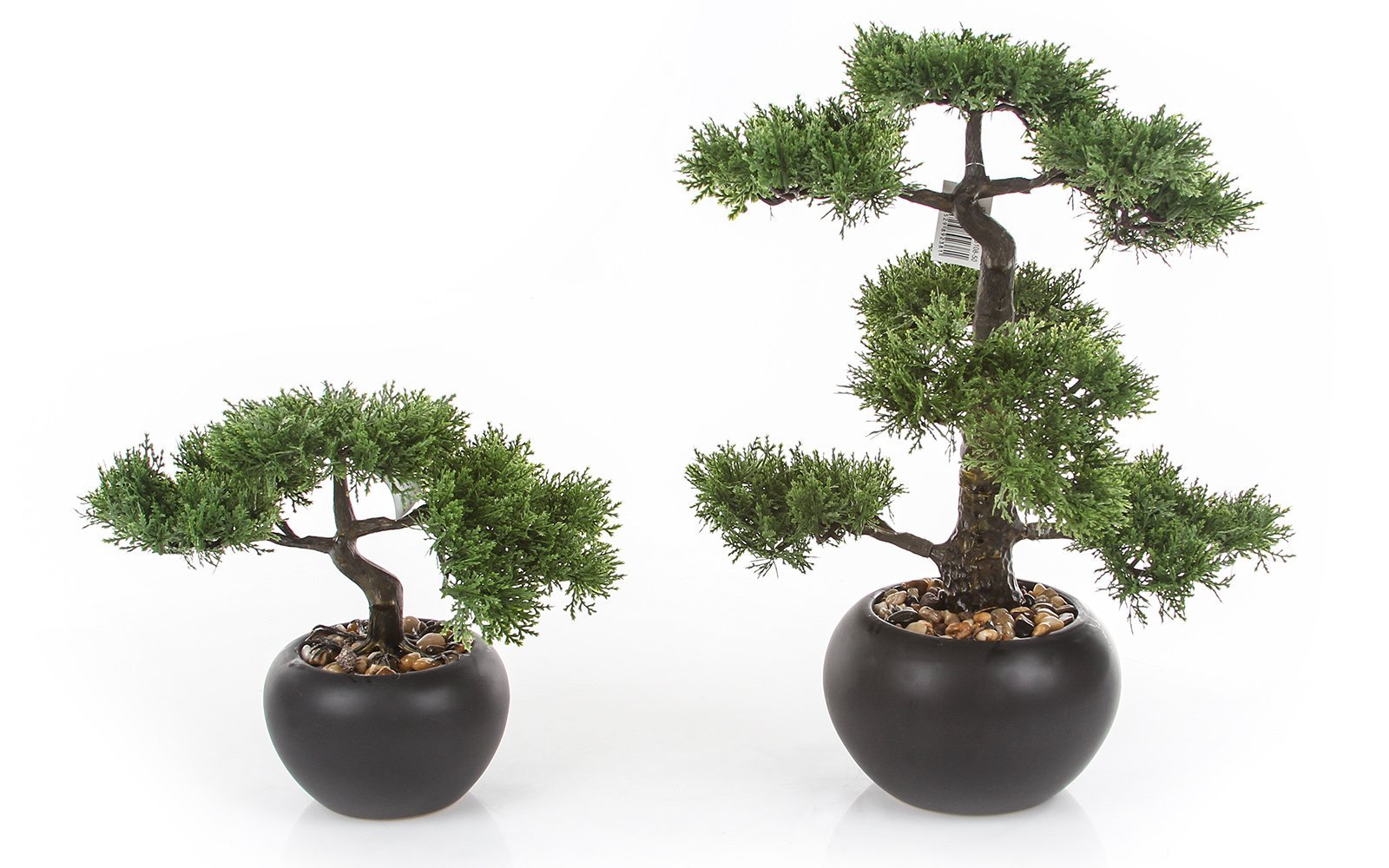 Штучне дерево кедр бонсай 48 см, в горщику з чорної кераміки