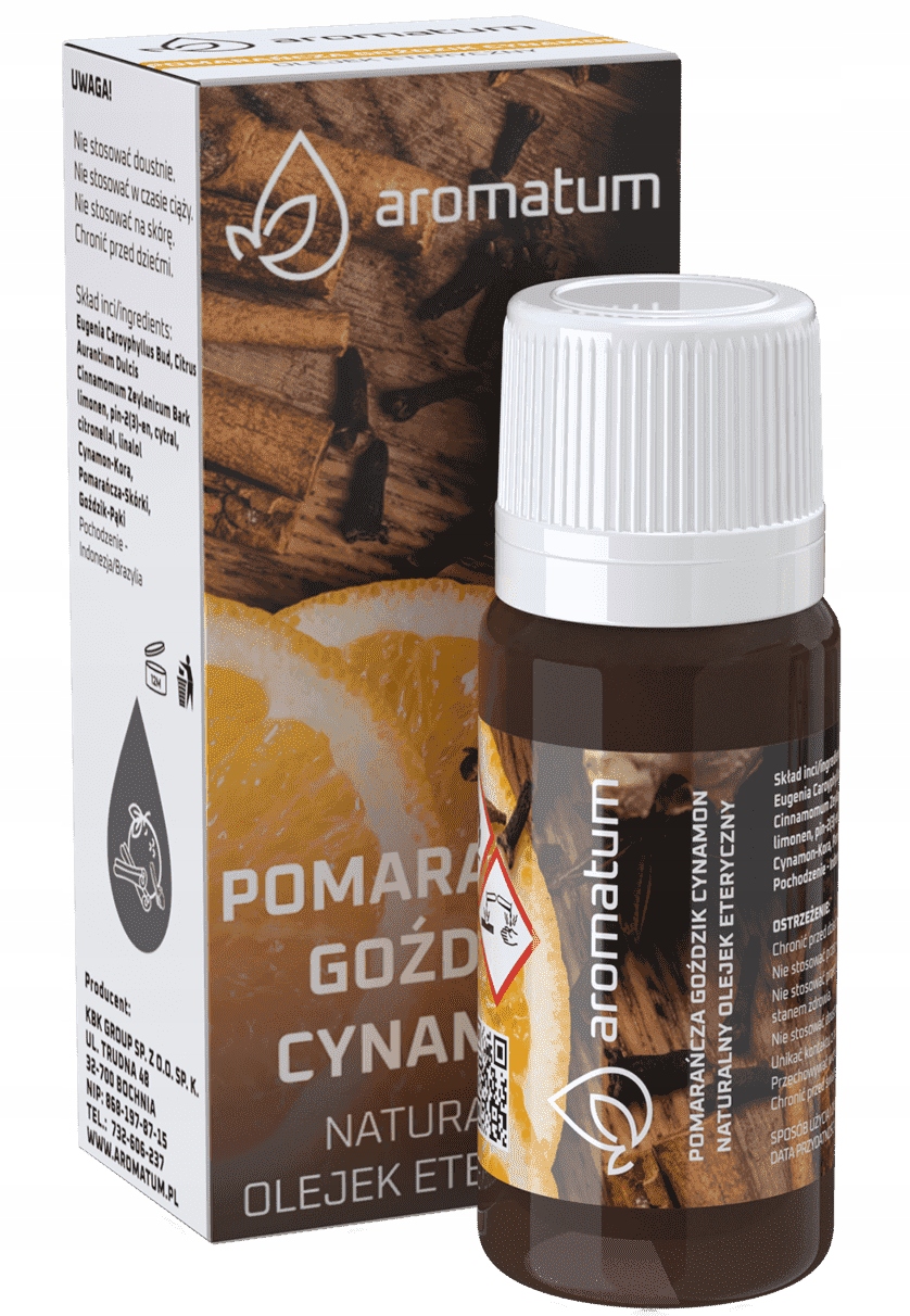 Натуральна ефірна олія, яка навіює спогади про свята. Це ароматне поєднання апельсина, кориці та гвоздики також має цілющі властивості. Масло апельсина має антисептичну, заспокійливу та тонізуючу дію. Ідеально підходить для всіх типів депресії, нервового напруження і м'язових спазмів. Гвоздика - справжня цілюща бомба, яка атакує вільні радикали. Численні антиоксидантні сполуки, безсумнівно, очищають організм від токсинів. Використовується в основному для боротьби з нежиттю, застудою, грипом, запаленням, кашлем і синуситом. Кориця підвищує мозкову активність і, як наслідок, покращує настрій і покращує пам'ять і концентрацію. Це також буде корисно для полегшення головного болю при мігрені, ревматичних і м’язових болях.