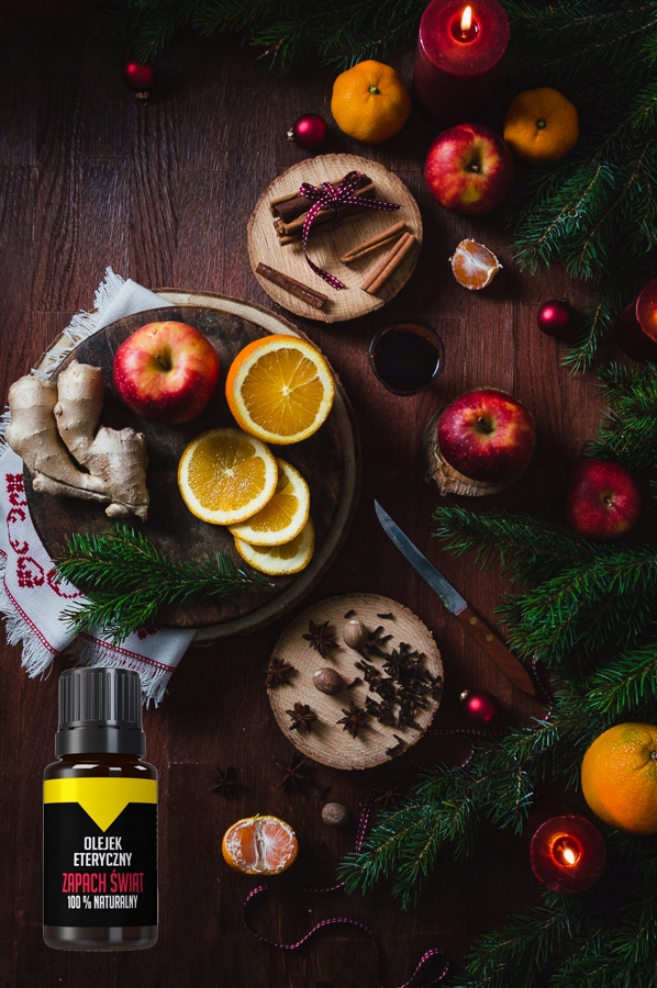 Ефірна олія Аромат Різдва від Біловіт містить суміш ефірних олій, таких як: апельсина, сосни, гвоздики та кориці.