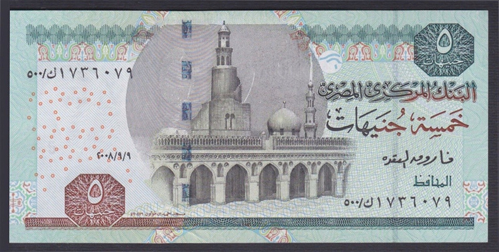 Красива банкнота в 5 фунтів з Єгипту - 2008. (P-63r) в абсолютно ідеальному стані банку I (UNC).
