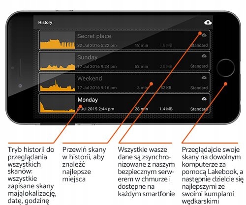 START — дивовижне опитування для всіх, яке допоможе вам визначити найкращі місця для риболовлі, щоб ви могли туди повернутися. Ви можете уважно вивчити кожне сканування, буде видно кожну деталь, і ви дізнаєтесь більше про види, які хочете зловити. Функція нотаток, яка дозволить вам зберігати всі деталі місць, які ви відвідуєте. Використовуйте карти, доступні в додатку, - це дозволить вам позначати та запам'ятовувати найкращі місця.