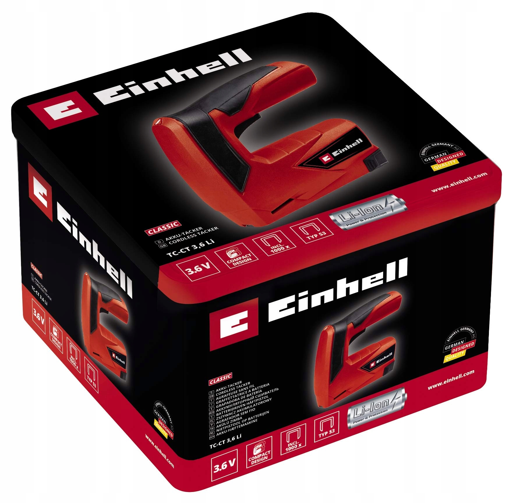 Ейнхелл TC-CT 3.6 Лі Штаплер акумулятора (3,6 В, 1,3 ах, 30 пострілів/ хв, ергономіка. Softgrip, безпечний ніс, доставка з металевою коробкою, зарядним пристроєм та штапелем)