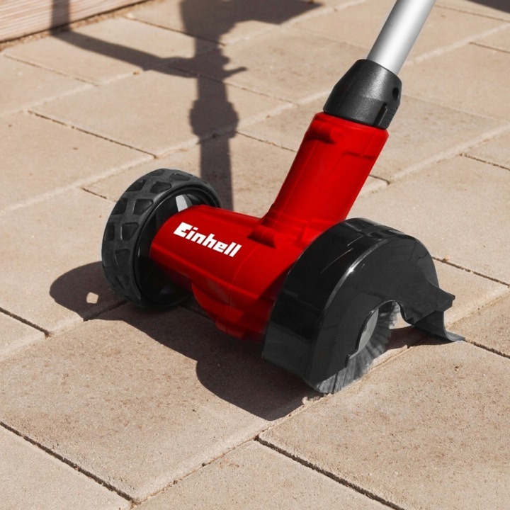 Очищення швів між бруківкою, щілин між плитами, різних видів борозенок і бордюрів завжди було трудомістким і проблематичним. Але Einhell приходить нам на допомогу і використовує пристрій GE-CC 18 Li Solo з лінійки Power X-Change, завдяки якому ми можемо без будь-яких зусиль видалити бур’яни, мох і бруд, не згинаючи і не пошкоджуючи бруківку чи бордюр. Прилад оснащений дротяно-повстяною щіткою діаметром 10 см і зручною телескопічною алюмінієвою ручкою. Конструкцію доповнює зручна прогумована ручка і додаткова рукоятка на валу. Це дозволяє повністю адаптувати пристрій під ваші потреби. Завдяки живленню від надзвичайно ефективних акумуляторів із лінійки Power X-Change ми можемо взяти пристрій куди завгодно, не розмотуючи подовжувач і не засмучуючись, коли він пошкоджений або занадто короткий. Пропозиція включає понад 65 пристроїв з лінійки Power X-Change, що працюють від одного типу акумулятора P X-C і одного зарядного пристрою. Це означає, що ми можемо купувати інші пристрої з лінійки у версії SOLO - без батареї та зарядного пристрою - використовуючи ті, які у нас уже є. Додатково можна придбати акумулятори різної ємності (від 2 Ач до 5,2 Ач).