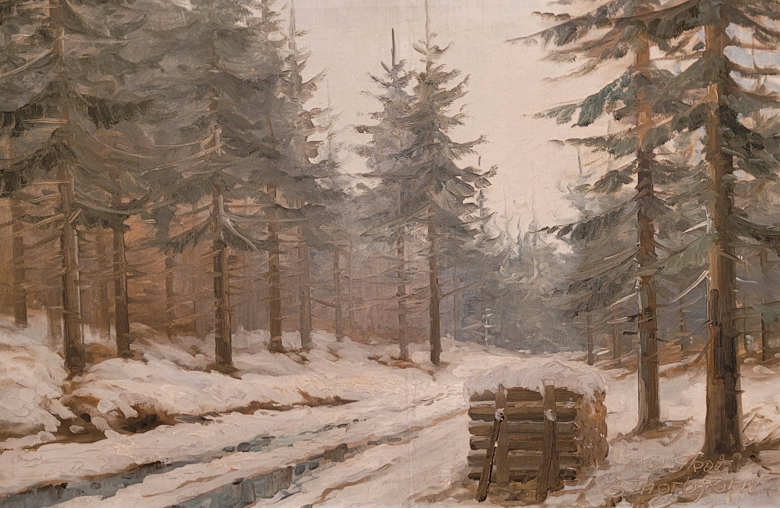 ЕЙНАР ТОРБЙОРН ( 1911 – 1985 ) - Всесвітньо відомий датчанин. пейзажист, відомий серією олійних робіт із Гренландії, Норвегії та лісів Ютландії. Народився в 1911 році в Сольб'єргу. Він навчався живопису під наглядом художника Нільса Томсена, з яким практикував свої навички, малюючи фрески в церквах і місцевих будівлях. Перша виставка робіт Торбйорна відбулася в 1928 році в Ольборзькому художньому музеї, коли йому було 17 років. Пізніше він подорожував до Норвегії, а в 1949 році — до датської колонії Гренландія, де жив і працював 2 роки. Президент США Ліндон Б. Джонсон придбав 2 роботи Торбйорна, коли він відвідав Копенгаген у 1963 році. Художник малював і виставляв свої роботи до самої смерті в 1985 році. Внесено до списку Arcadja, Findartinfo, Artprice та багатьох інших порталів та аукціонних будинків.