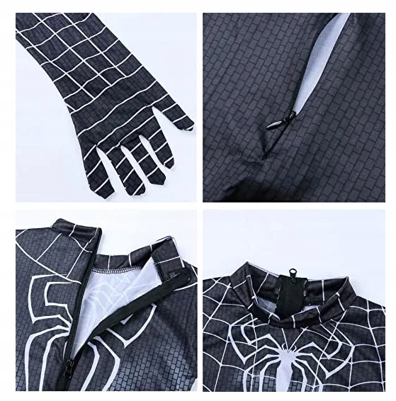 Цілий костюм Людини-павука темного графіту. Гарно пошитий, злегка еластичний, застібається на блискавку, що робить костюм швидким і зручним.