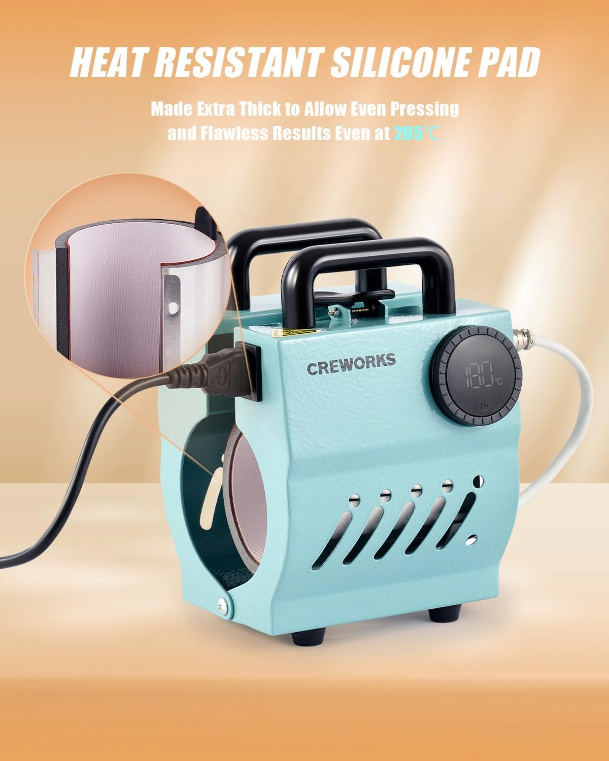 Надійна безпека - цей перенесений прес для чашок і чашок оснащений високостійким силіконовим килимком для рівного прасування та відмінних результатів. Він постачається з парою рукавичок, тож ви можете безпечно виконати свою роботу