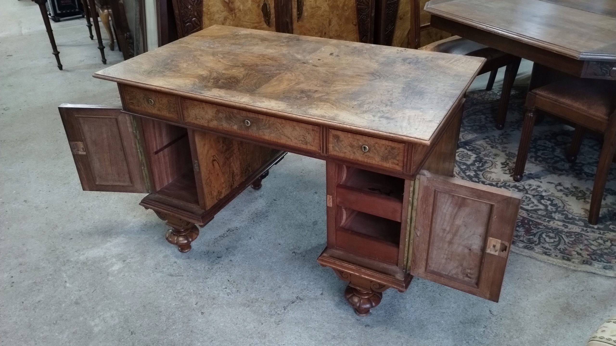 "Еклектичний двосторонній письмовий стіл з горіха Берлін 1870/80"