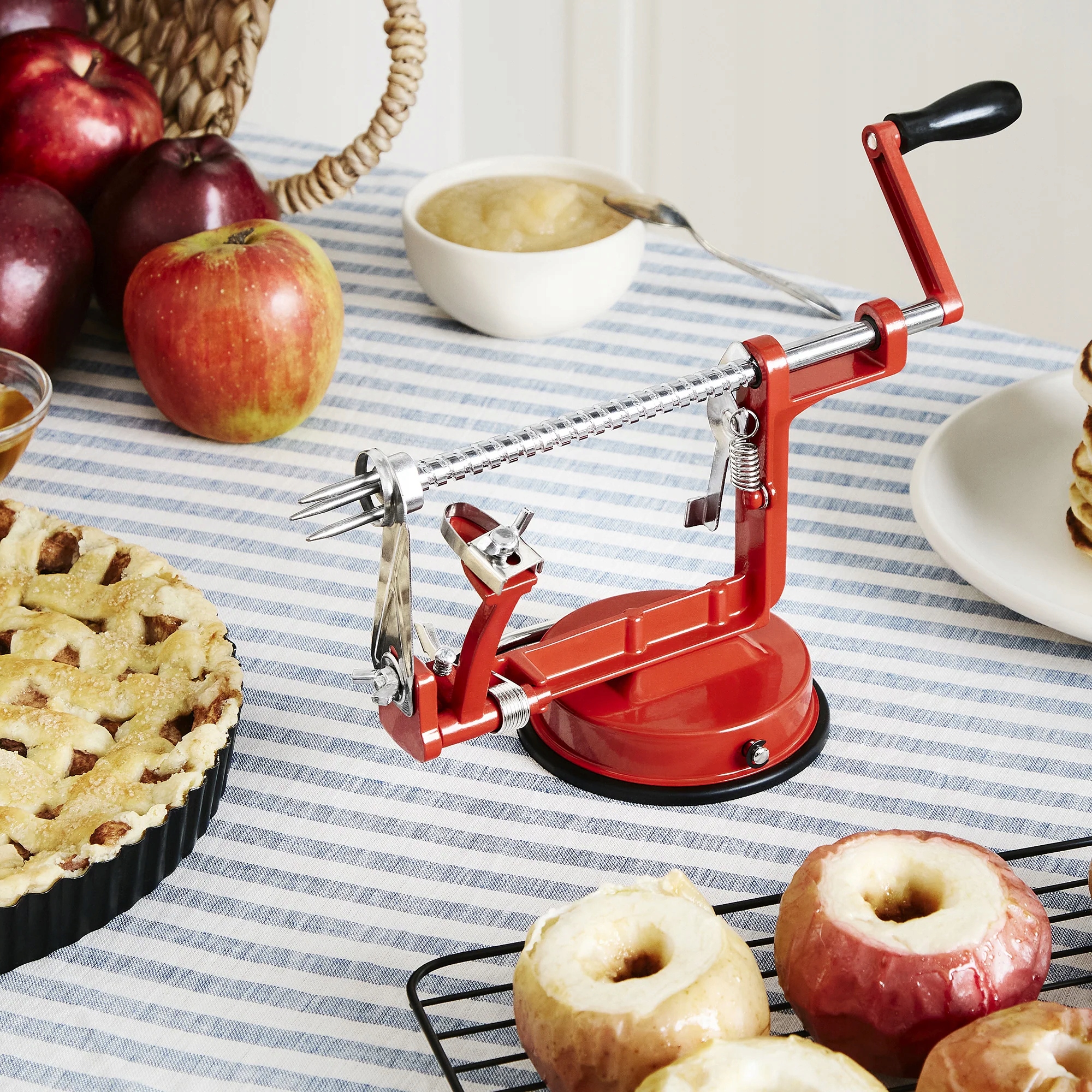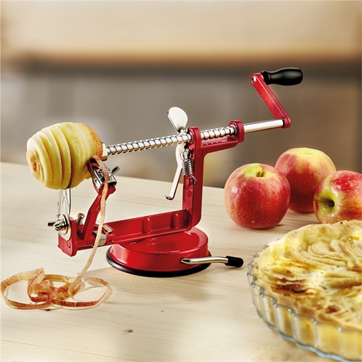 Використовуючи цей практичний інструмент, ви швидко видалите шкірку Apple і вирізаєте їх. Це працює! Спробуйте сьогодні і з'їжте здорові свіжовичавлені яблука.