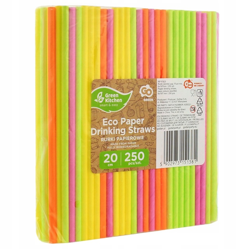 Еко -паперова соломка барвисті для дня народження напоїв 20 см 250 шт.