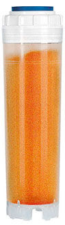Фільтр-картридж з іонообмінною смолою пом’якшує воду, видаляючи іони кальцію та магнію що зумовлює його твердість. Надмірна жорсткість води призводить до утворення накипу на нагрівальних елементах пральних, посудомийних машин, електрочайників та інших побутових приладів, а також призводить до збільшення витрати пральних і посудомийних засобів. Термін служби картриджа зі смолою закінчується, коли іонообмінна ємність картриджа зі смолою вичерпується. Це залежить від жорсткості та кількості фільтрованої води.