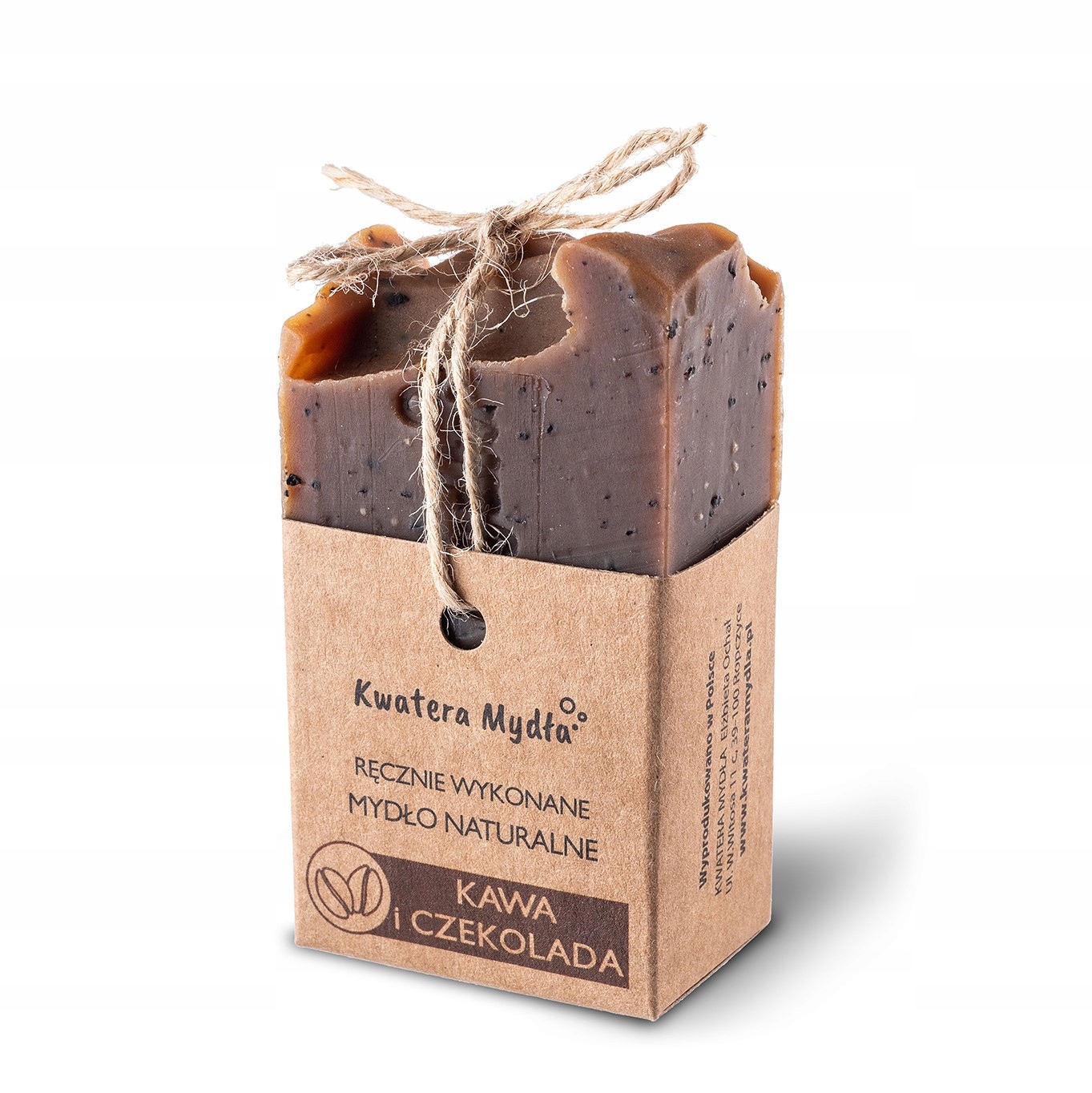 Натуральне веганське кавове мило, виготовлене вручну невеликими партіями. Частинки натуральної кави, що містяться в милі, ніжно відлущують ороговілий епідерміс, роблячи шкіру м’якою та гладкою на дотик. Рисова олія, оливкова олія, кокосова і касторова олії, а також масло ши і какао - ідеальні для зволоження і живлення. Кофеїн розгладжує, зміцнює, має антицелюлітні властивості та уповільнює процес старіння. Мило збагачене ароматизованою косметичною олією, яка підкреслює природний аромат кави та шоколаду, що міститься в косметиці. Рекомендовано для зрілої нормальної шкіри.