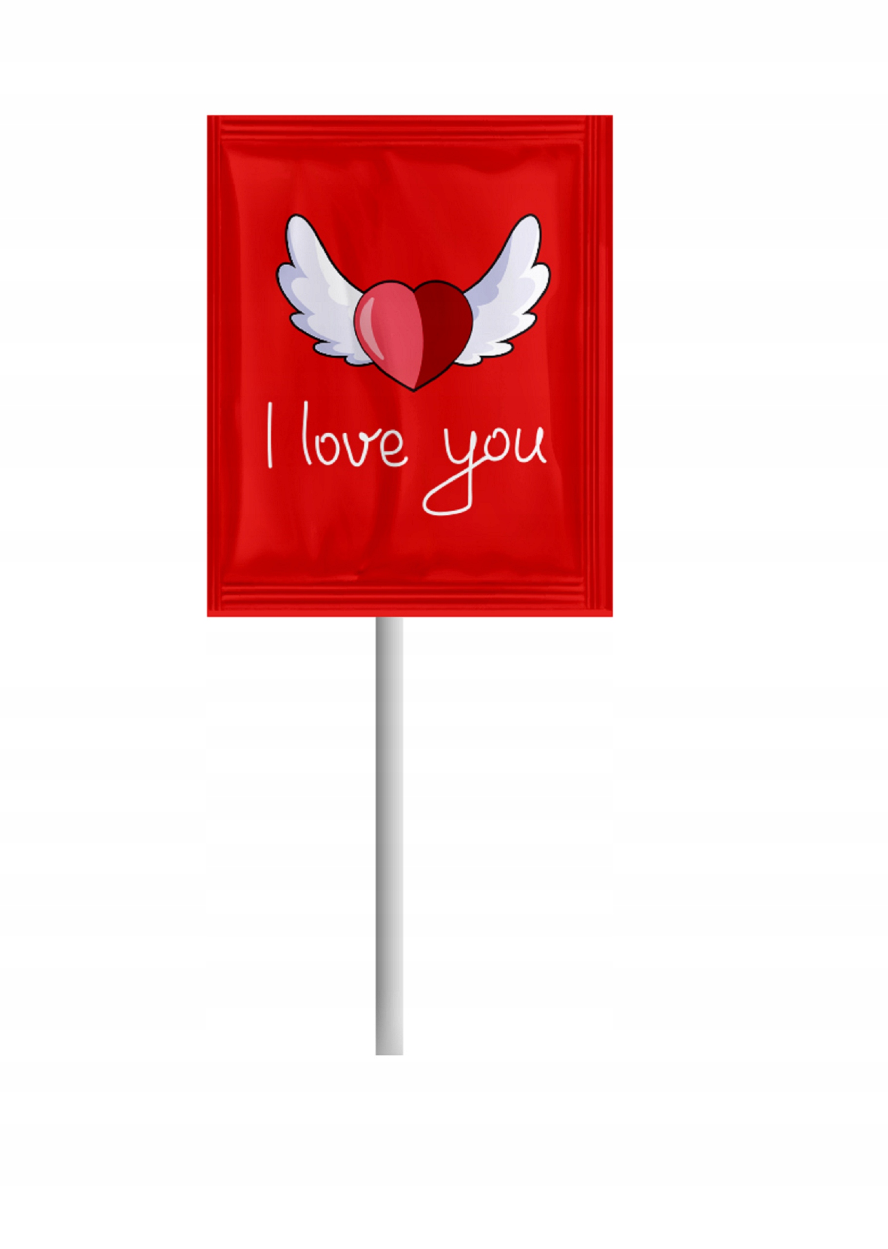 Кожен льодяник упакований окремо з різними написами: Kiss me, Heart For You, Best Friends, I Love you, I love you....