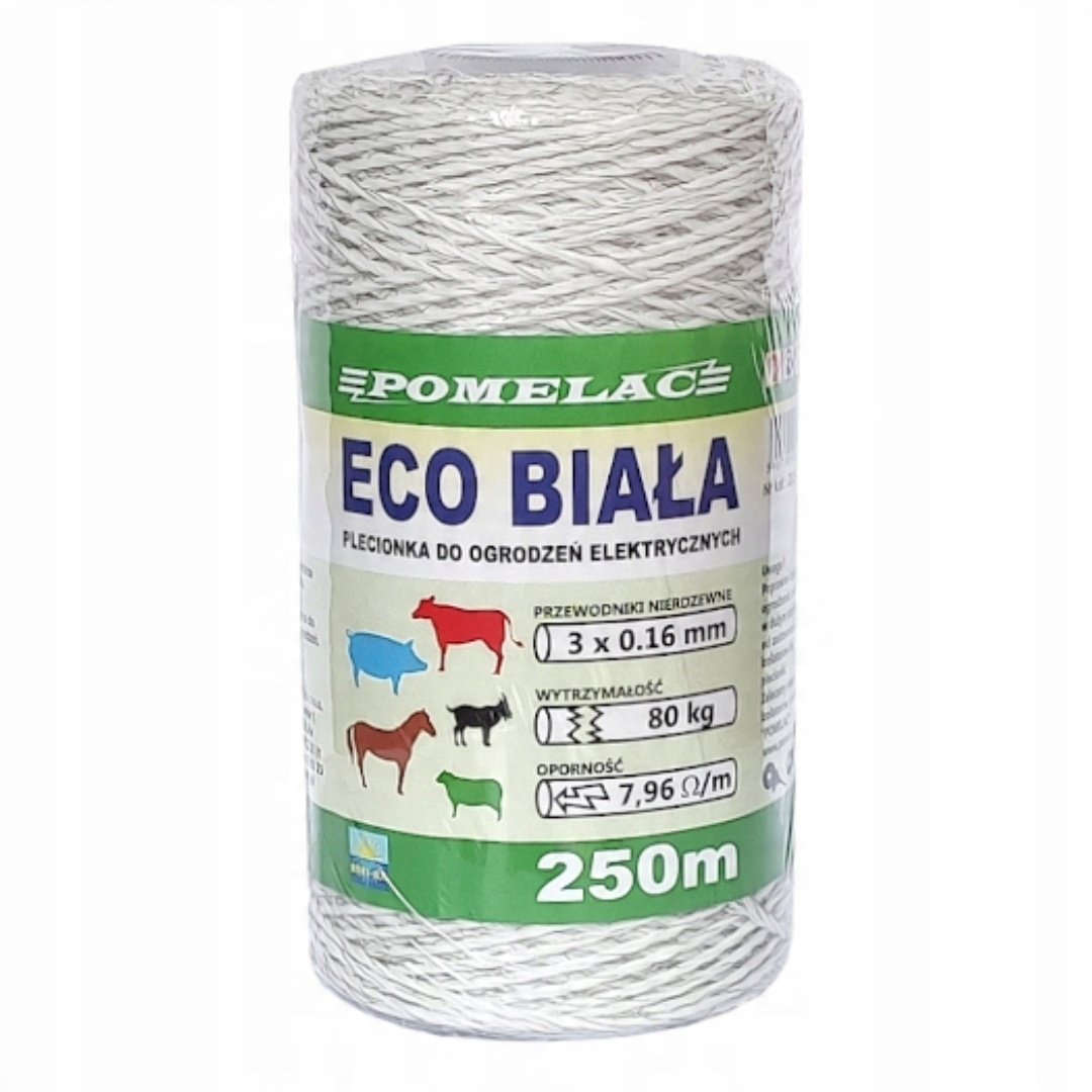Високоякісна плетінка для будівництва електроогорож. Він дуже довговічний і міцний, тому термін його служби значно довший. Дуже легко згорнути або розмотати. Призначений для будівництва малих і середніх парканів.